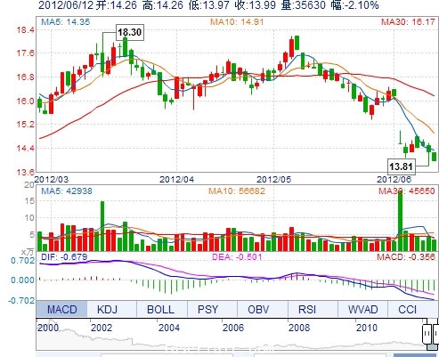 今 開: | 14.26 | 成交量: | 35630手 | 振 幅: | 2.03% |