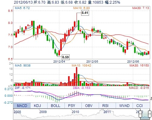 今 開: 6.70 成交量: 10852手 振 幅: 2.25% 最 高: 6.83 成交額: 735.20萬 換手率: 0.39% 最 低: 6.68 總市值: 19.44億 市凈率: 3.11 昨 收: 6.67 流通市值:...