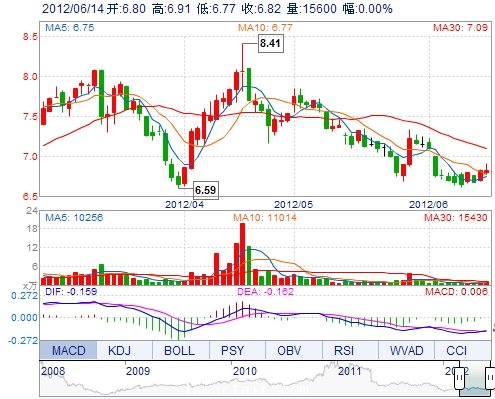 今 開: 6.80 成交量: 15599手 振 幅: 2.05% 最 高: 6.91 成交額: 1068.69萬 換手率: 0.57% 最 低: 6.77 總市值: 19.44億 市凈率: 3.11 昨 收: 6.82 流通市值...