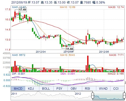 今 開: 13.07 成交量: 7684手 振 幅: 2.69% 最 高: 13.35 成交額: 1012.06萬 換手率: 3.98% 最 低: 13.00 總市值: 8.76億 市凈率: 2.82 昨 收: 13.02 流通市...