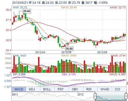 | 今 開: | 24.19 | 成交量: | 3817手 | 振 幅: | 2.48% |