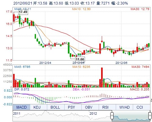 今 開: 13.58 成交量: 7270手 振 幅: 4.23% 最 高: 13.60 成交額: 957.96萬 換手率: 3.77% 最 低: 13.03 總市值: 8.82億 市凈率: 2.84 昨 收: 13.48 流通市值...