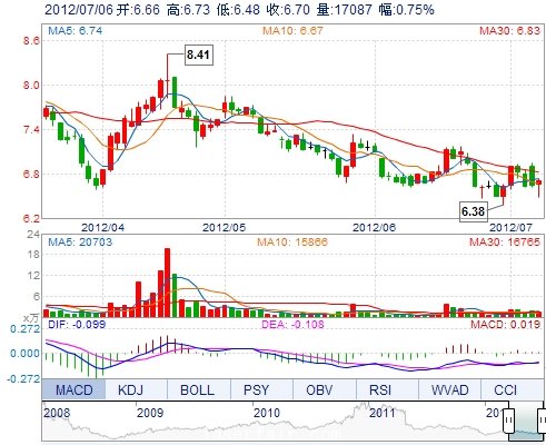 今 開: 6.66 成交量: 17086手 振 幅: 3.76% 最 高: 6.73 成交額: 1127.83萬 換手率: 0.62% 最 低: 6.48 總市值: 19.10億 市凈率: 3.06 昨 收: 6.65 流通市值...