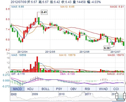 今 開: 6.67 成交量: 14458手 振 幅: 3.73% 最 高: 6.67 成交額: 945.92萬 換手率: 0.53% 最 低: 6.42 總市值: 18.33億 市凈率: 2.94 昨 收: 6.70 流通市值:...
