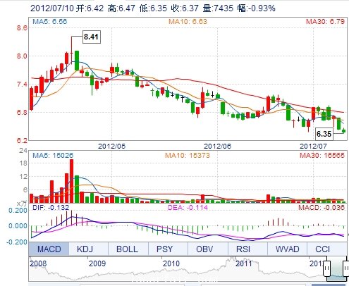 今 開: 6.42 成交量: 7434手 振 幅: 1.87% 最 高: 6.47 成交額: 475.13萬 換手率: 0.27% 最 低: 6.35 總市值: 18.15億 市凈率: 2.91 昨 收: 6.43 流通市值: ...