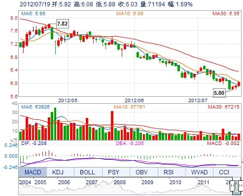 今 開: 5.92 成交量: 71193手 振 幅: 3.37% 最 高: 6.08 成交額: 4287.37萬 換手率: 0.75% 最 低: 5.88 總市值: 62.98億 市凈率: 2.12 昨 收: 5.93 流通市值...