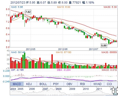今 開: 5.95 成交量: 77920手 振 幅: 3.04% 最 高: 6.07 成交額: 4680.62萬 換手率: 0.82% 最 低: 5.89 總市值: 62.66億 市凈率: 2.11 昨 收: 5.93 流通市值...