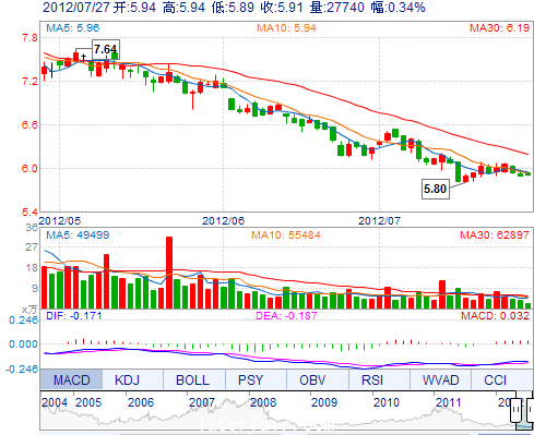今 開(kāi): 5.94 成交量: 27739手 振 幅: 0.85% 最 高: 5.94 成交額: 1639.31萬(wàn) 換手率: 0.29% 最 低: 5.89 總市值: 61.72億 市凈率: 2.07 昨 收: 5.89 流通市值...