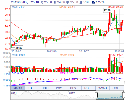 | 今 開: | 25.18 | 成交量: | 5198手 | 振 幅: | 3.65% |