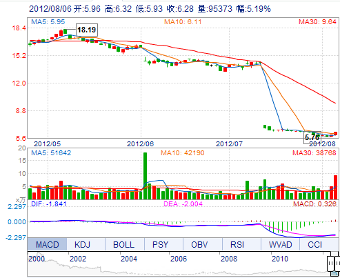 | 今 開: | 5.96 | 成交量: | 95373手 | 振 幅: | 6.53% |