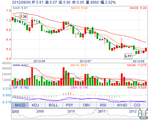 今 開(kāi): | 5.91 | 成交量: | 8960手 | 振 幅: | 2.87% |
