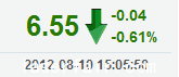 | 今 開: | 6.54 | 成交量: | 44610手 | 振 幅: | 1.82% |