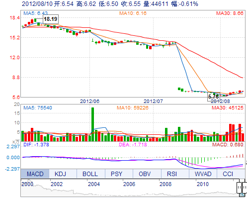 今 開: 6.54 成交量: 44610手 振 幅: 1.82% 最 高: 6.62 成交額: 2922.62萬 換手率: 0.50% 最 低: 6.50 總市值: 58.37億 市凈率: 1.11 昨 收: 6.59 流通市值...