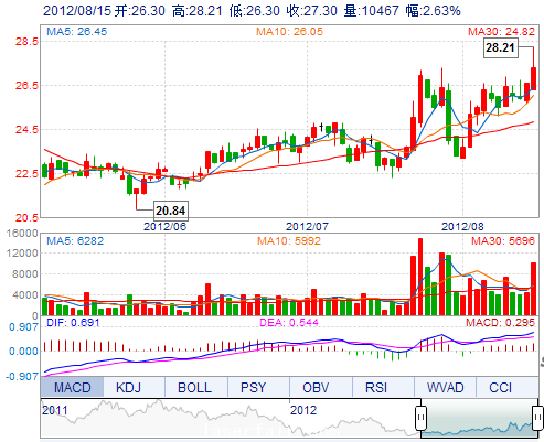 最 高: 28.21 成交額: 2880.65萬 換手率: 10.00%
