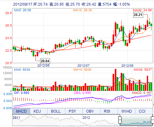 今 開: 26.74 成交量: 5753手 振 幅: 4.68% 最 高: 26.95 成交額: 1503.64萬 換手率: 5.50% 最 低: 25.70 總市值: 9.25億 市凈率: 3.32 昨 收: 26.70 流通市...