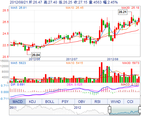 最 高: 27.40 成交額: 1232.37萬(wàn) 換手率: 4.36%