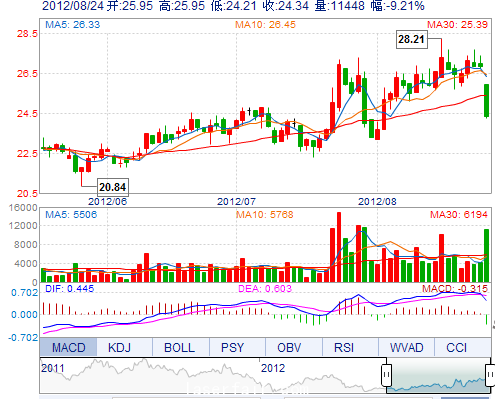 今 開: 25.95 成交量: 11448手 振 幅: 6.49%