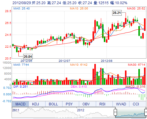 最 高: 27.24 成交額: 3356.16萬(wàn) 換手率: 11.95%