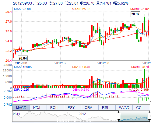 最 高: 27.80 成交額: 3896.24萬(wàn) 換手率: 14.12%