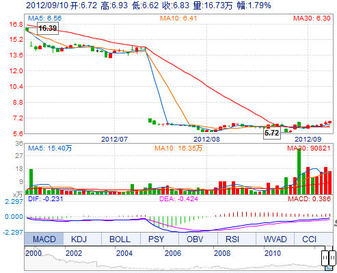 昨 收: 6.71 流通市值: 60.86億 市盈率TTM 37.11