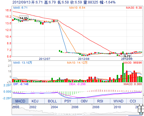 今 開: 6.71 成交量: 88325手 振 幅: 3.13%