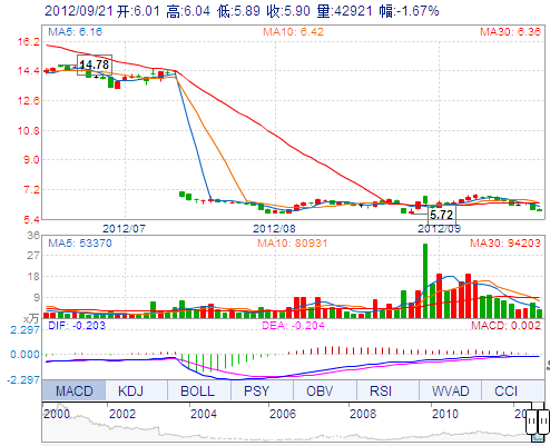 今 開(kāi): 6.01 成交量: 42920手 振 幅: 2.50%