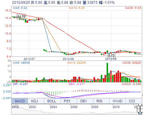 最 低: 5.88 總市值: 52.40億 市凈率: 1.01
