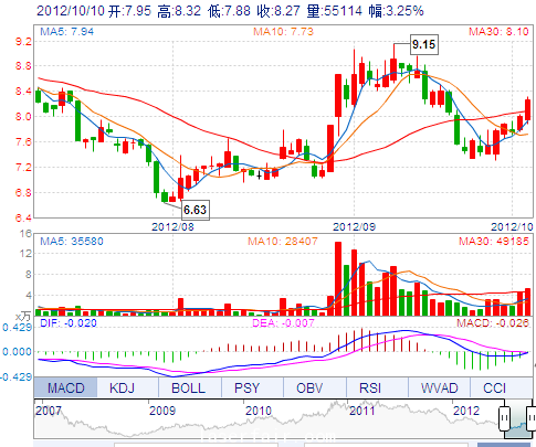 | 今 開: | 7.95 | 成交量: | 55113手 | 振 幅: | 5.49% |