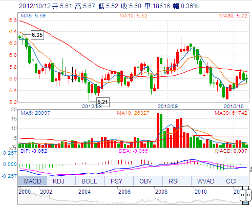 | 今 開: | 5.61 | 成交量: | 18615手 | 振 幅: | 2.69% |