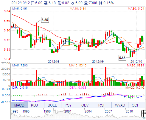 今 開: 6.09 成交量: 7307手 振 幅: 2.63% 最 高: 6.18 成交額: 444.99萬 換手率: 0.42% 最 低: 6.02 總市值: 10.58億 市凈率: 2.62 昨 收: 6.08 流通市值: ...