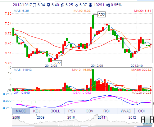 今 開: 6.34 成交量: 10291手 振 幅: 2.38% 最 高: 6.40 成交額: 652.34萬 換手率: 0.37% 最 低: 6.25 總市值: 18.15億 市凈率: 3.02 昨 收: 6.31 流通市值:...