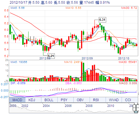 今 開: 5.50 成交量: 17444手 振 幅: 1.81% 最 高: 5.60 成交額: 968.55萬 換手率: 0.40% 最 低: 5.50 總市值: 24.29億 市凈率: 1.77 昨 收: 5.51 流通市值:...