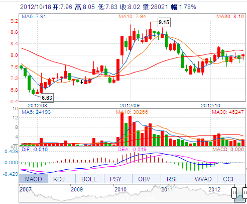 今 開: 7.96 成交量: 28020手 振 幅: 2.79% 最 高: 8.05 成交額: 2228.56萬 換手率: 1.44% 最 低: 7.83 總市值: 15.98億 市凈率: 3.26 昨 收: 7.88 流通市值...