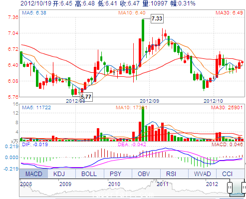 今 開: 6.45 成交量: 10996手 振 幅: 1.09% 最 高: 6.48 成交額: 709.10萬(wàn) 換手率: 0.40% 最 低: 6.41 總市值: 18.44億 市凈率: 3.07 昨 收: 6.45 流通市值:...