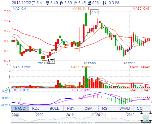 | 今 開: | 6.41 | 成交量: | 9261手 | 振 幅: | 1.55% |