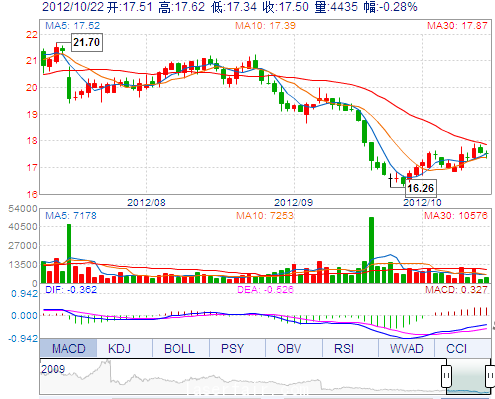 | 今 開: | 17.51 | 成交量: | 4435手 | 振 幅: | 1.60% |