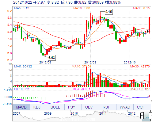 | 今 開: | 7.97 | 成交量: | 90958手 | 振 幅: | 11.47% |