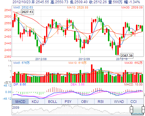 | 昨 收: | 2546.43 | 成交量: | 5661038手 |