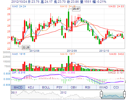 | 今 開: | 23.76 | 成交量: | 1560手 | 振 幅: | 1.97% |