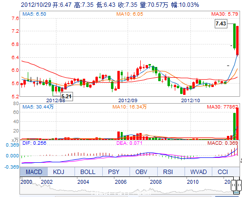 今 開: 6.47 成交量: 705662手 振 幅: 13.77% 最 高: 7.35 成交額: 50112.87萬 換手率: 16.16% 最 低: 6.43 總市值: 32.10億 市凈率: 2.39 昨 收: 6.68 流通...