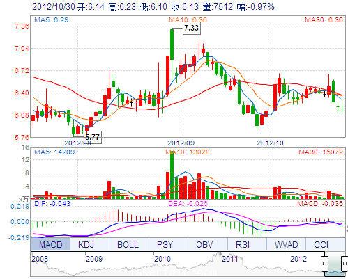 今 開: 6.14 成交量: 7511手 振 幅: 2.10% 最 高: 6.23 成交額: 462.70萬 換手率: 0.27% 最 低: 6.10 總市值: 17.47億 市凈率: 2.85 昨 收: 6.19 流通市值: ...