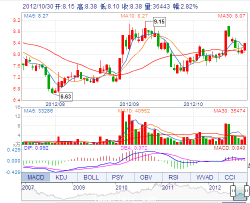 今 開: 8.15 成交量: 36443手 振 幅: 3.44% 最 高: 8.38 成交額: 3009.21萬 換手率: 1.88% 最 低: 8.10 總市值: 16.70億 市凈率: 3.37 昨 收: 8.15 流通市值...