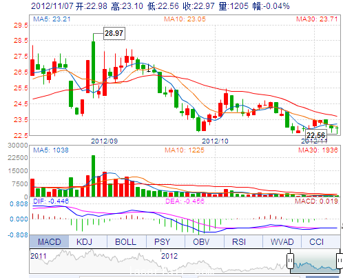 | 今 開: | 22.98 | 成交量: | 1205手 | 振 幅: | 2.35% |