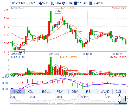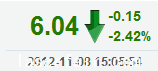 | 今 開(kāi): | 6.19 | 成交量: | 11040手 | 振 幅: | 2.42% |