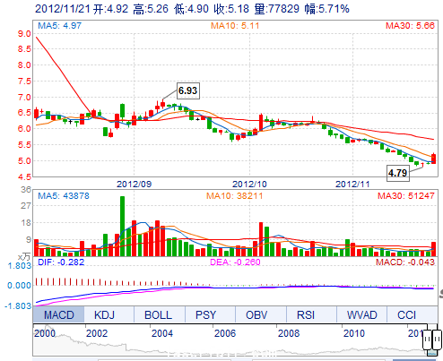 今 開: 4.92 成交量: 77829手 振 幅: 7.35%