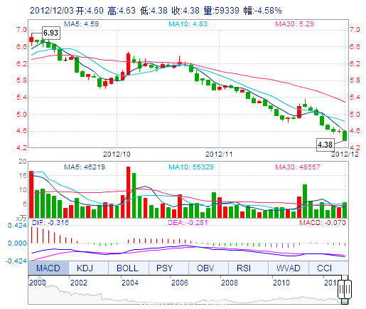 今 開: 4.60 成交量: 5.93萬手 振 幅: 5.45% 最 高: 4.63 成交額: 2666.94萬元 換手率: 0.67% 最 低: 4.38 總市值: 39.03億 市凈率: 1.49 昨 收: 4.59 流通市...