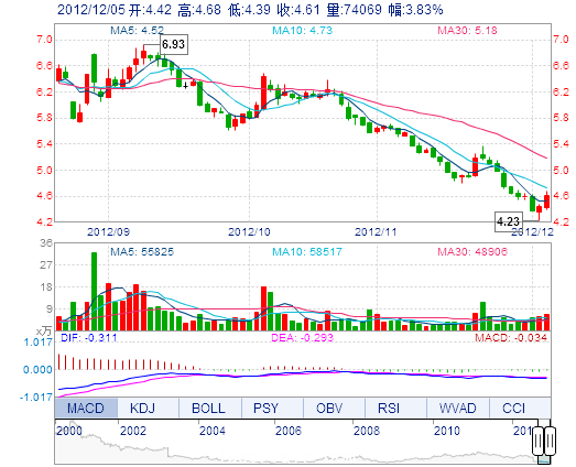 | 今 開: | 4.42 | 成交量: | 7.41萬手 | 振 幅: | 6.53% |