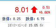 今 開: 7.52 成交量: 32.92萬手 振 幅: 8.40% 最 高: 8.15 成交額: 2.60億元 換手率: 3.48% 最 低: 7.52 總市值: 83.66億 市凈率: 2.58 昨 收: 7.50 流通市值...