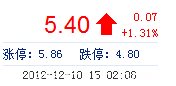 | 最 高: | 5.42 | 成交額: | 356.99萬(wàn)元 | 換手率: | 0.38% |