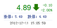 | 昨 收: | 4.99 | 流通市值: | 43.58億 | 市盈率TTM: | 29.17 |